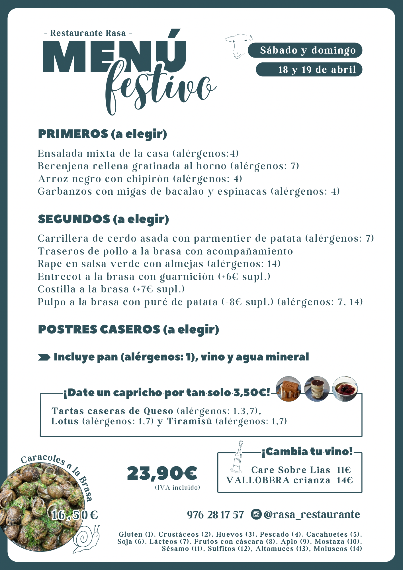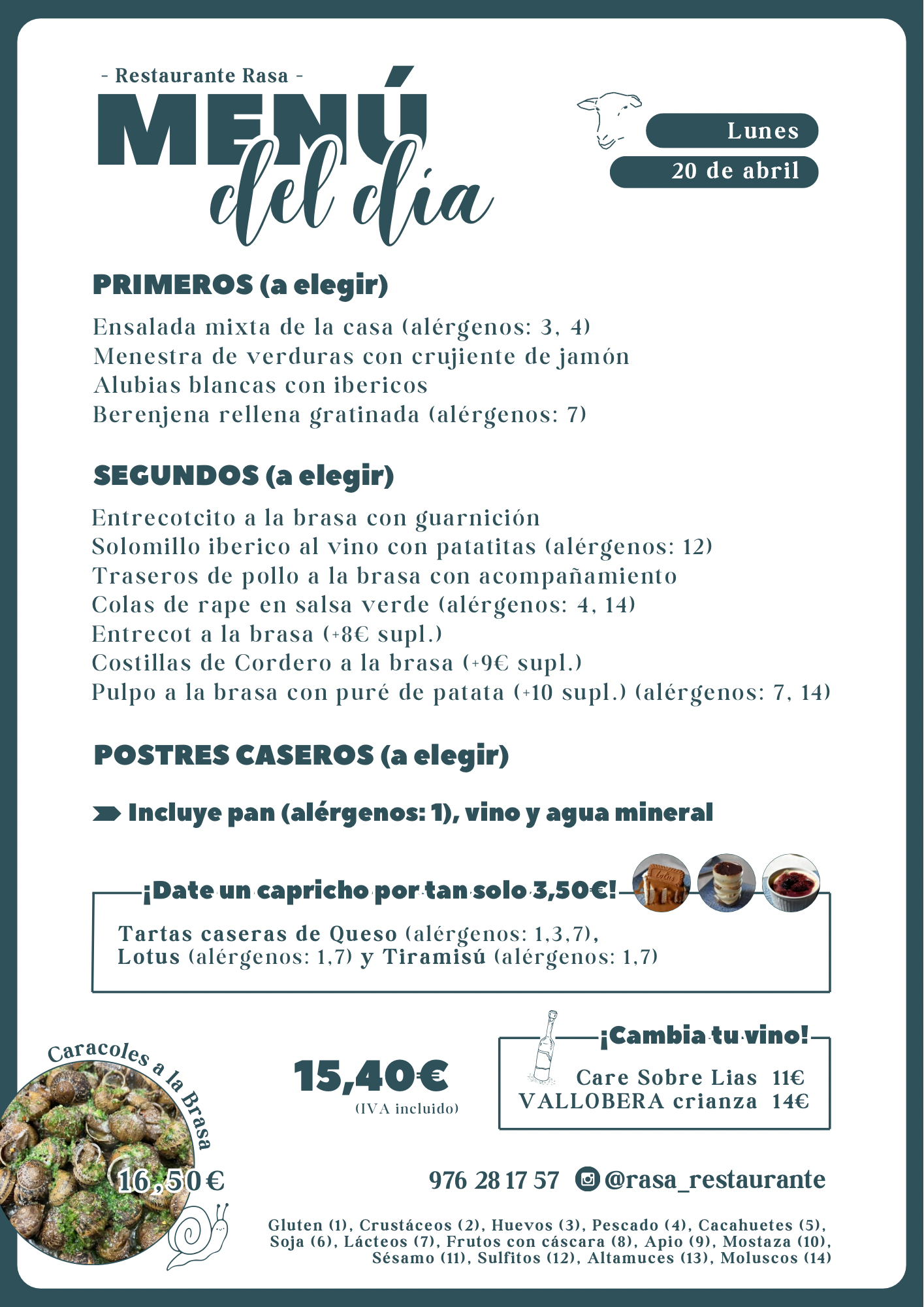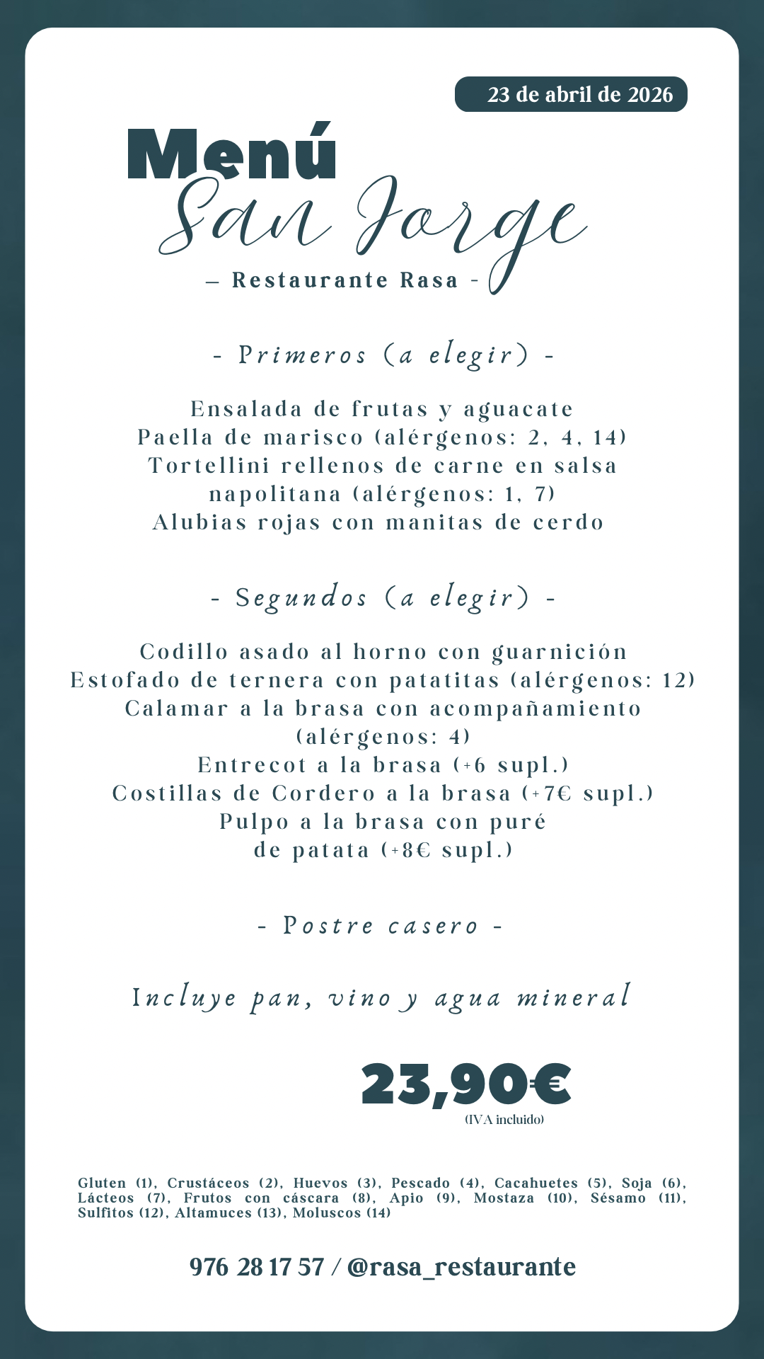 Rasa es uno de los lugares más recomendados para disfrutar de "EL MEJOR COCIDO DE ZARAGOZA" los jueves y los viernes.